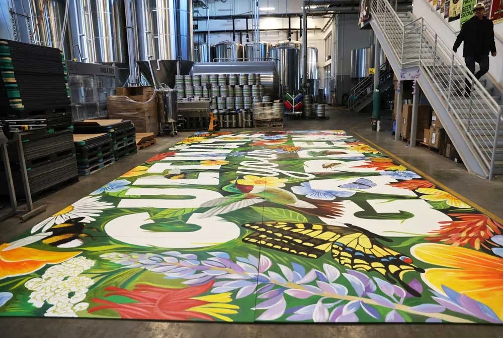 Worthy Brewing's ReWild mural, which depicts Oregon native species, has been moved to the brewery's Eastside pub after a dissenting neighbor derailed plans to install the artwork at the company's Beers & Burgers location in downtown Bend.
